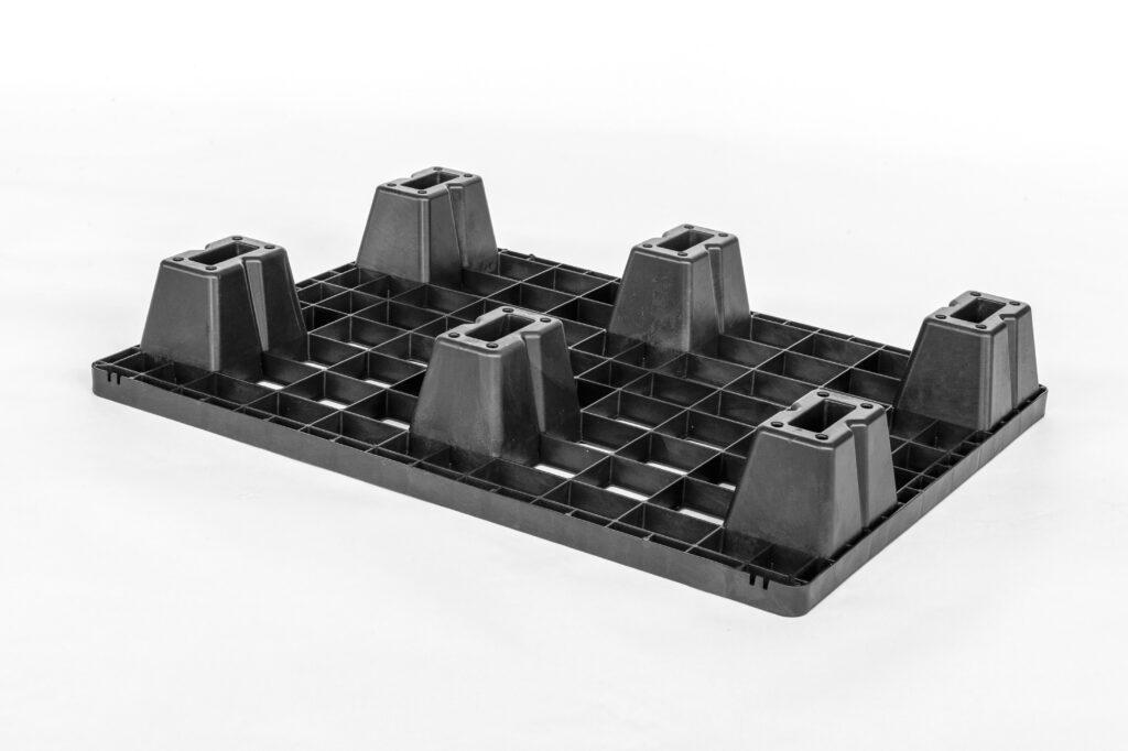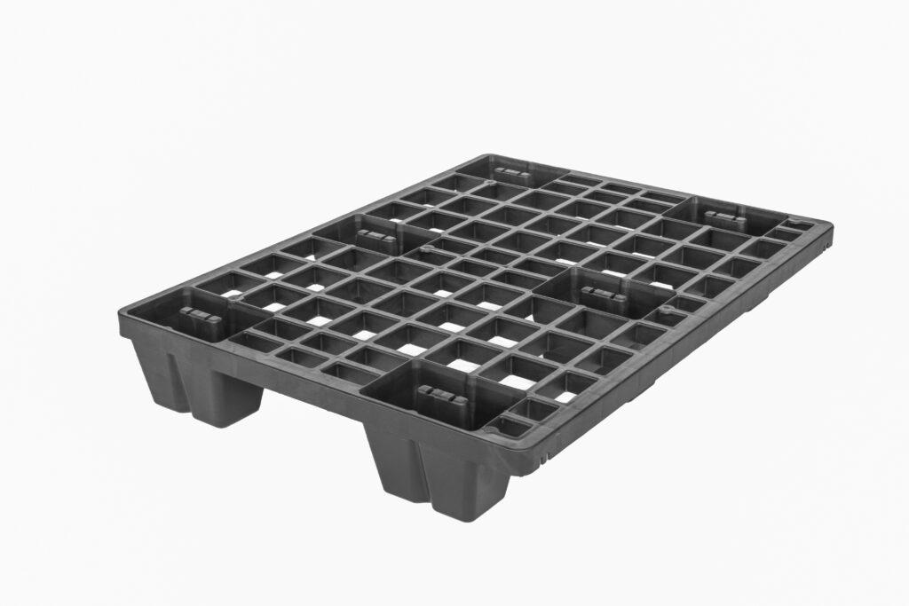 Mezzo pallet leggero, impilabile e adatto a tutte le movimentazioni, con un peso di soli 2,7 kg ed una portata di 400 kg.